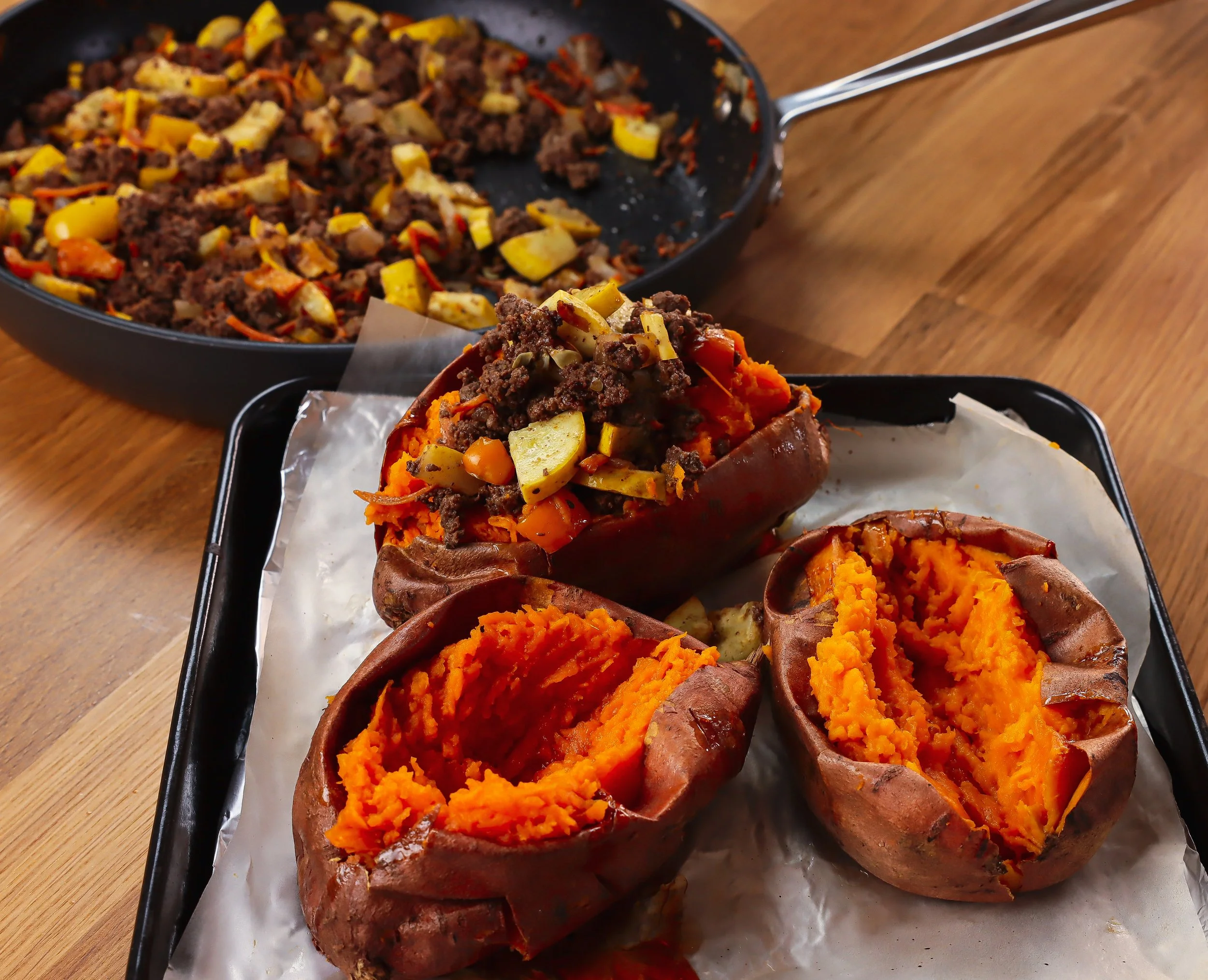 BATATAS DULCES RELLENAS DE CARNE MOLIDA