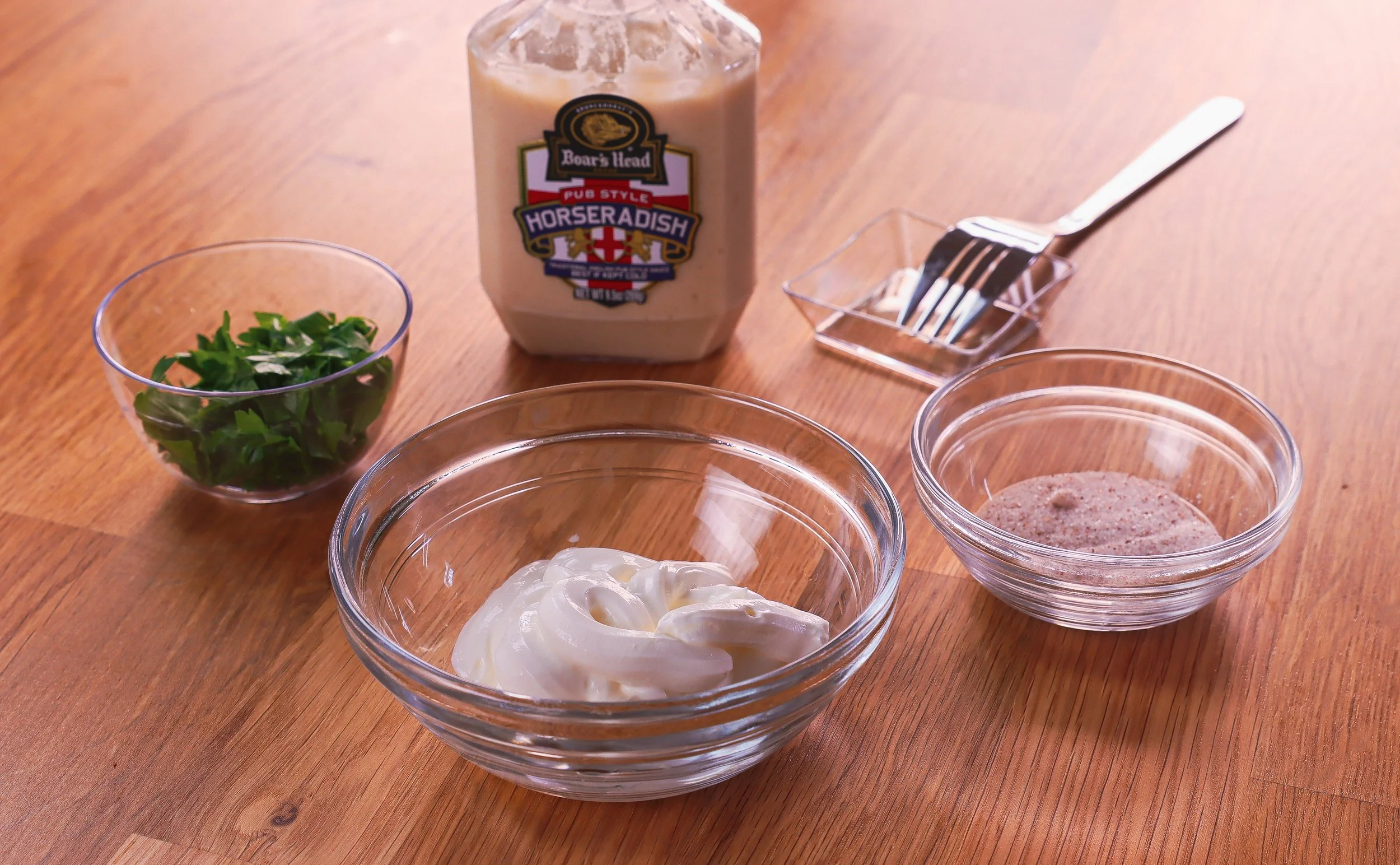 - En un tazón pequeño agregue la crema agria, el puré de horseradish y la sal. Mezclar hasta combinar y servir.
